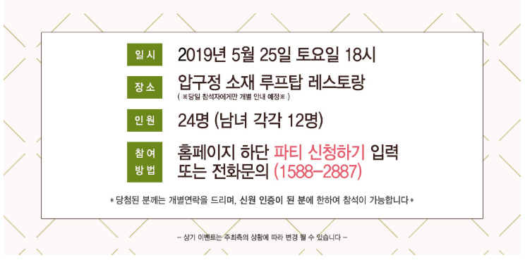 결혼정보회사 디노블_4월 서울/부산 미팅파티 개최 (0) | 2019.04.09 |