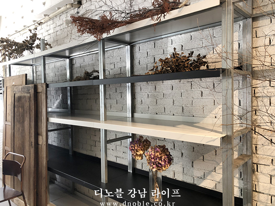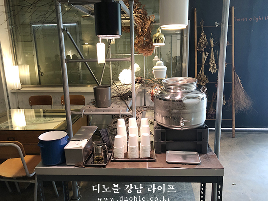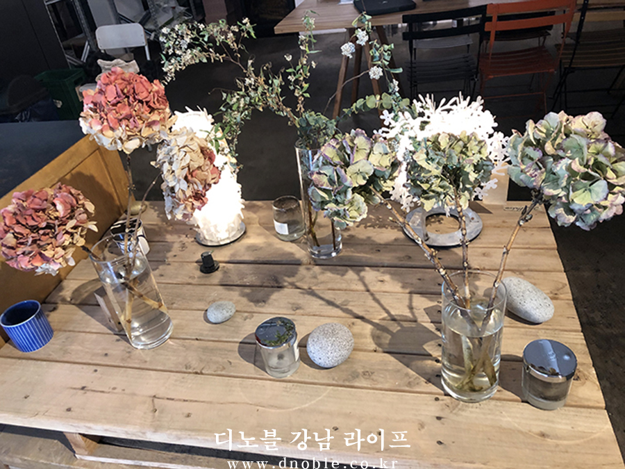드라이플라워로 곳곳에 꾸민 꽃들은 삭막한 느낌이 들 수도 있는 카페에 아늑한 느낌을 주며 편안하게 즐거운 시간을 보낼 수 있게 해줍니다.