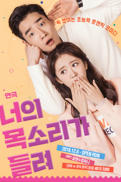 비슷한 연애 이야기 말고 색다른 로맨틱 코미디를 원하는 직장인 소개팅 커플에게 추천하는 대학로 연극은 '너의 목소리가 들려'라는 편의점의 새로 온 아르바이트 생인 얌전한 듯하지만 할 말은 다 하는 특이한 강박증을 갖고 있는 수지와 좋은 대학을 나왔지만 몇 년째 취직을 하지 못하고 있는 아르바이트 4개월 차 민준의 설레는 썸 타는 이야기입니다. 민준은 운영한 사고로 다른 사람의 생각을 들을 수 있게 되었고 그 능력을 이용해 수지와 창업을 하게 됩니다. 그렇게 수지와 민준은 점점 가까워지게 되는데 갑작스럽게 나타난 민준의 옛 애인에 의해 수지의 과거가 밝혀지면서 둘의 사랑 이야기에 장애물이 발생하게 됩니다. 과연 둘의 사랑은 이루어질 수 있을까요? 설레는 두 번째 만남의 기회를 연극 '너의 목소리가 들려'와 성공적인 두 번째 만남 되시길 바랍니다.