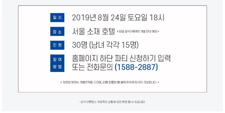 ▼ 노블레스 결혼정보업체 디노블 8월 미팅파티 신청하기 ▼
