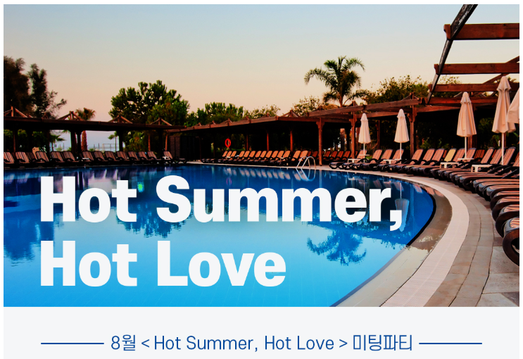 안녕하세요. 노블레스 결혼정보업체 디노블 강남 라이프입니다. 본격적인 여름의 더위가 시작된 8월, 솔로탈출 전문 디노블이 더위와 외로움에 지친 싱글들을 위해 <Hot Summer, Hot Love> 미팅파티를 준비했습니다.