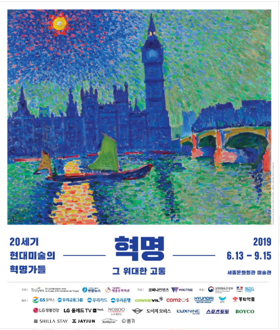 앙드레 드랭이 그린 야수파 최고의 걸작 '빅 벤'이 아시아 최초로 공개되는 이번 전시회는 세종문화회관 미술관에서 열리고 있습니다. 이번 전시는 라코스테 그룹의 소유주인 피에르 레비와 데니스 레비 부부가 약 40여 년간 수집한 컬렉션으로, 1976년 자신들의 예술품 약 2천 점을 국가에 전부 기증해 세워진 트루아 현대미술관의 전시로 국가 중요 보물 컬렉션으로 지정받아 관리되는 프랑스 트루아 현대미술관의 국내 최초 전시회로 약 2년간의 미술관 리모델링을 기회로 서울과 독일, 단 두 곳에서의 전시회가 열리게 되었습니다. 특히 현대미술과 추상미술의 분수령이 된 20세기 혁명적 시대의 '혁졍적 예술가'들이 펼쳐낸 작품과 정신을 만날 수 있으며 또한 현대미술의 시작을 알린 야수파와 입체 파티의 탄생 배경과 원리를 쉽고 재미있게 어려운 현대미술의 이해를 도울 수 있어 전시회가 낯선 직장인 커플들도 편하게 즐길 수 있습니다.