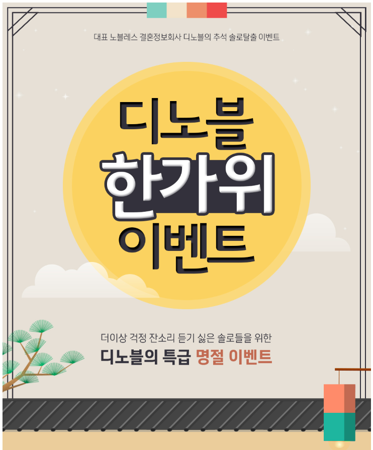 안녕하세요. 결혼정보회사 디노블 강남 라이프입니다. 오늘은 대표 노블레스 결혼정보회사 디노블의 솔로탈출 추석 이벤트 소식 <디노블 한가위 이벤트>를 준비했습니다!