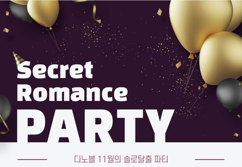직장인 소개팅 전문 디노블의 11월 <Secret Romance PARTY>는 2019년이 가기 전에 솔로탈출을 꿈꾸는 미혼남녀를 위해 기획한 비밀스러운 싱글파티입니다.