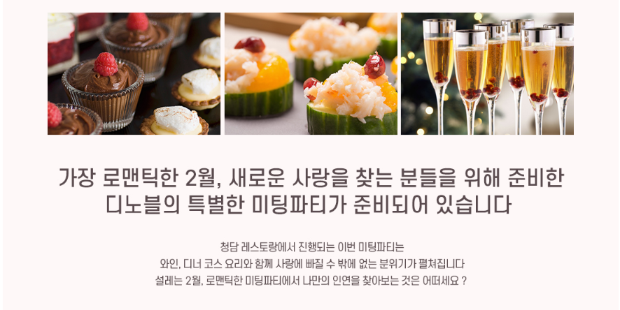 안녕하세요. 결혼정보회사 디노블 강남 라이프입니다. 커플들에게는 두근두근 발렌타인 데이가 있는 2월이지만 솔로들에게는 더없이 외로운 날, 로맨틱 미팅파티 소식을 전해드리려고 합니다.