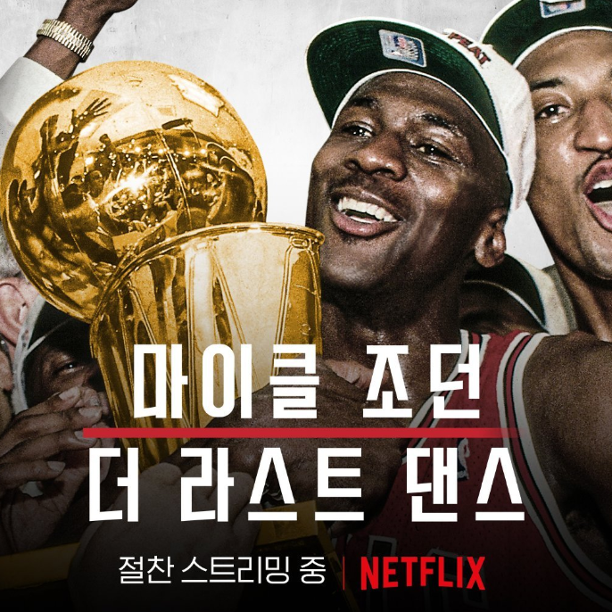다음으로 추천드리는 컨텐츠는, 농구의 전설 마이클 조던과 시카고 불스의 이야기를 담은 다큐멘터리 시리즈인 <마이클 조던 : 더 라스트 댄스>입니다. 불스 왕국을 이끌었던 필 잭슨 감독은 마이클 조던을 비롯한 챔피언 팀과 함께한 1997~1998 마지막 시즌을 '더 라스트 댄스'라고 불렀는데요, 그 황금기 시즌에 유래된 제목으로 최고의 농구선수 마이클 조던의 활약과 그가 걸어온 과정, 시카고 불스의 가장 화려했던 '불스 왕국'의 90년대 전성기 스토리까지 담겨있어 농구 팬들의 향수를 불러일으킵니다. 또한 다큐멘터리에 저스틴 팀버레이크, NAS, 샘 스미스, 오바마 전 미국 대통령까지 출연하며 탄탄한 스토리로 팬들을 사로잡고 있습니다.