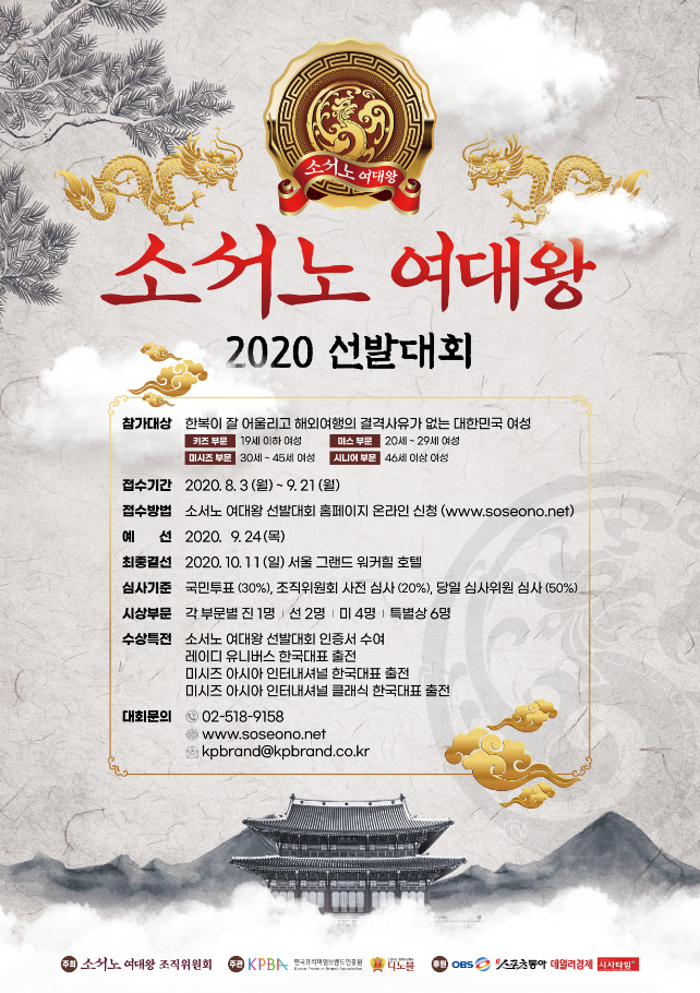 노블레스 결혼정보회사 디노블이 주관하는 '2020 소서노 여대왕 선발대회'는 일반적인 미인대회가 아닌 자선행사 형태로 운영되어, 수익금 일부를 기부하고 사회적 약자를 돕기 위한 각종 봉사 활동을 진행하는 등 보다 뜻깊고 의미 있는 선발 대회입니다.