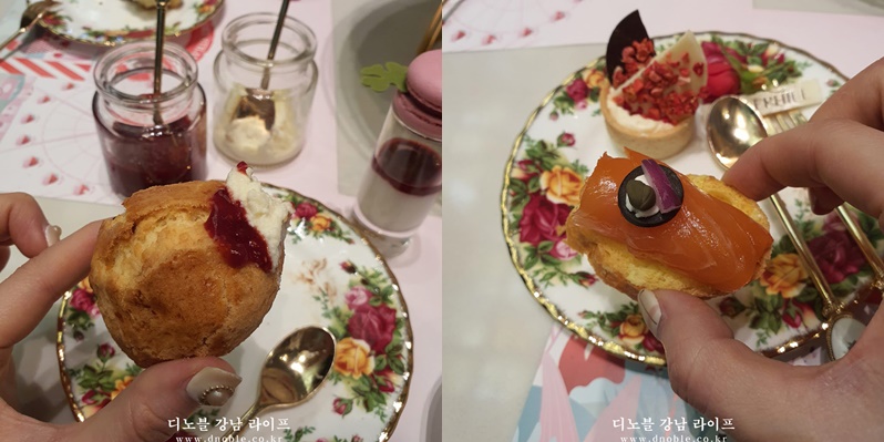 부드러운 스콘 & 생 연어 카나페 & 미니 샌드위치