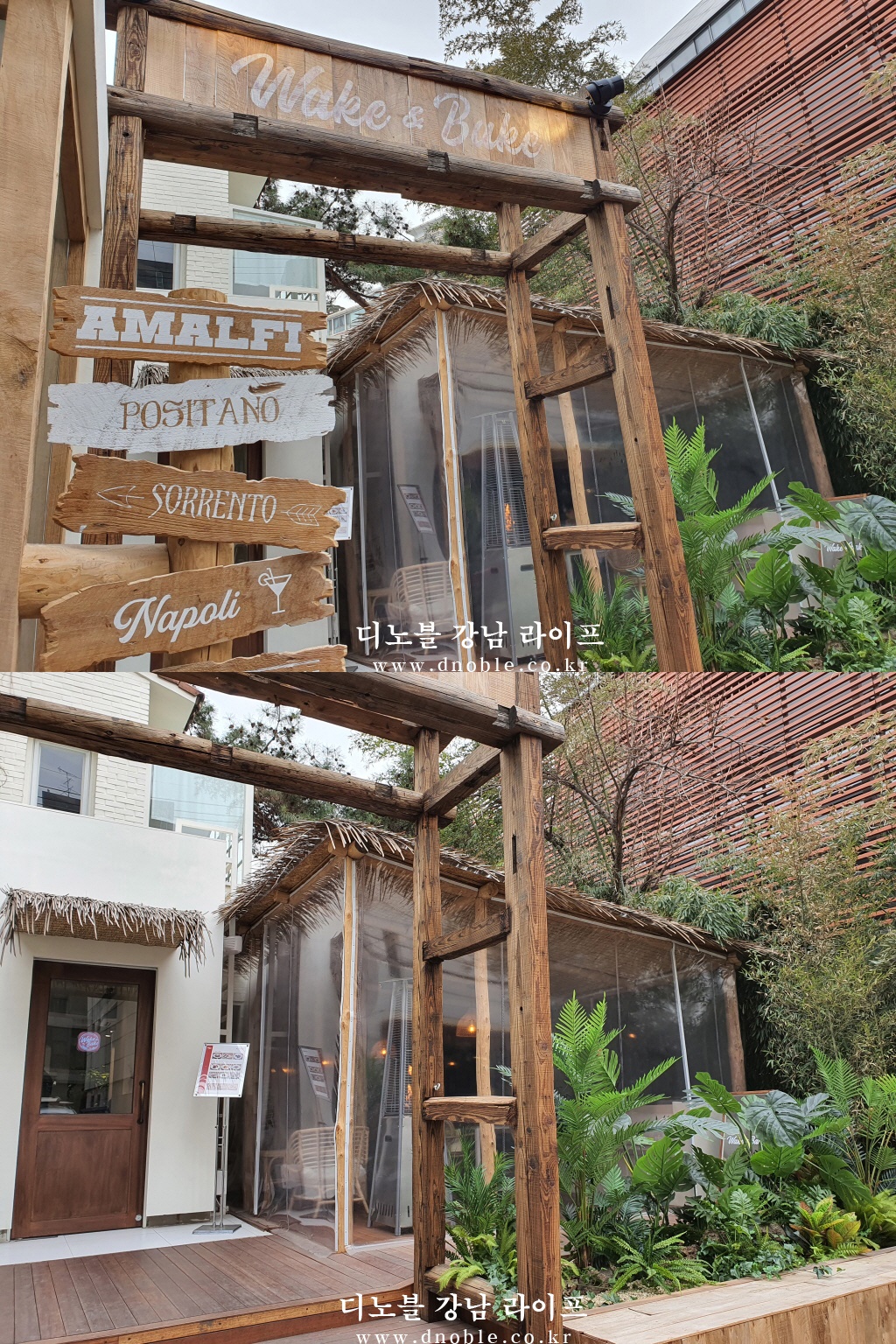 이태리풍 이국적인 외관을 보여주고 있는 이곳은 도산공원 브런치 맛집 웨이크앤베이크입니다. 얼마 전, 리뉴얼 오픈을 하면서 독채 건물로 확장 이전을 해 1층, 2층, 테라스까지 모두 사용 가능하며 층마다 두 공간 모두 각 각의 분위기로 취향에 맞게 선택할 수 있습니다.
