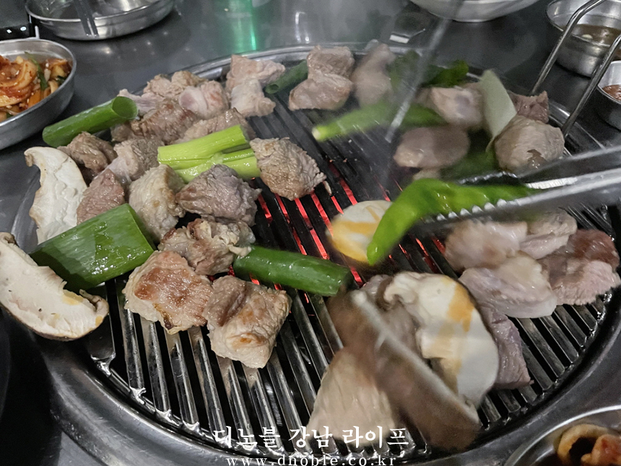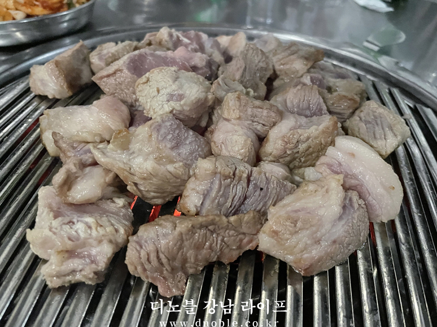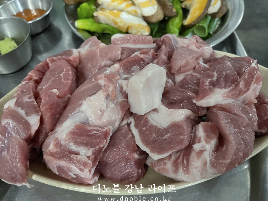 디노블은 목살과 모둠 야채를 주문했습니다. 살짝만 익혀 먹으면 되는 직장인 소개팅 애프터 장소로 추천하는 '길목'의 목살은 두툼하고 부드러운 식감이 스테이크를 먹는듯한 느낌이 들 정도로 만족스러웠습니다.