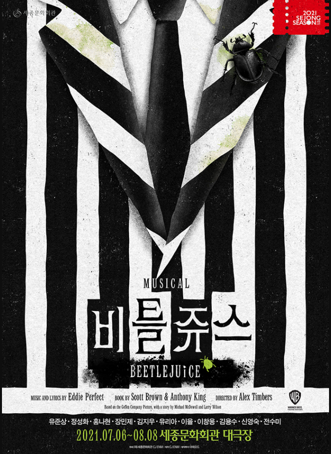 뮤지컬 비틀 주스의 원작은 1988년 개봉되었던 팀 버튼의 영화로 1989년 처음 우리나라에는 '유령수업'이란 제목으로 익숙한 작품입니다. 원작보다 재밌다는 평을 받고 있는 이 직품의 줄거리는 악마의 아들 비틀 주스가 어쩌다 지옥에서 쫓겨나 인간 세상에서 유배생활 중인 괴짜 유령으로 너무 외롭게 지내던 중 외딴집 바바라, 아담 부부가 기다린 대로 죽자 이들을 저승길에서 새치기해 자신의 친구로 만들려고 하고, 여기에 부동산 개발업자인 찰스와 그의 딸 리디아, 그리고 예비 새엄마 델리아가 이사 오면서 펼쳐지는 이야기로 화려하고 독특한 무대와 오브제가 애프터 데이트의 어색함을 느낄 새 없이 다가옵니다.