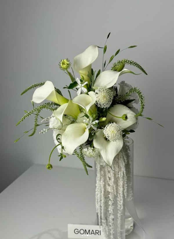 화이트칼라 릴리를 중심으로, 우아하면서도 세련된 분위기를 만들어줘요.