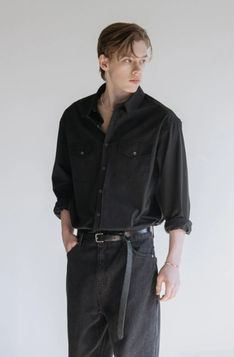 블랙 셔츠는 언제나 정답이지만, 평범하지 않은 디테일이 있어야 스타일이 살아납니다.