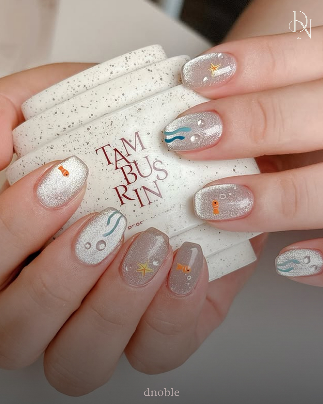 작은 물고기, 해초, 별 장식이 들어가 있어 바닷속의 귀여운 장면을 손톱 위에 옮겨놓은 듯하죠.