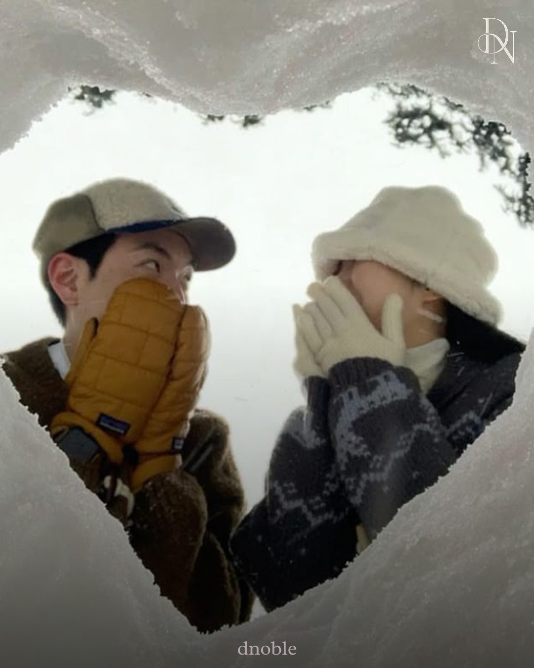 소복이 쌓인 눈 위에 마주 앉아 손끝으로 조심스럽게 그려내는 하트 하나.