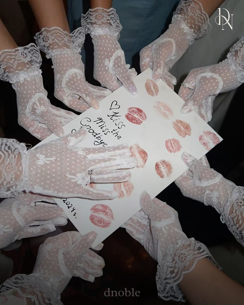 레이스 장갑을 낀 친구들의 손이 모여 만든 'Goodbye Miss' 메시지 카드!