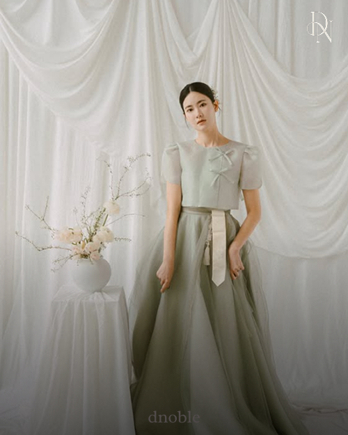 한복의 저고리를 연상시키는 상의 디테일과 은은한 파스텔 톤이 만나 정말 우아하죠?