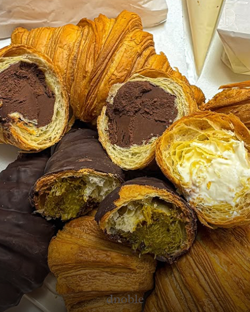 크루아상을 반으로 갈랐을 때 쏟아져 나오는 피스타치오 필링의 자태는 감탄을 자아내는데요.