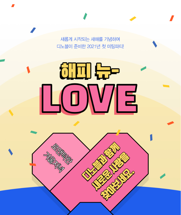 안녕하세요. 직장인 만남 전문 결혼정보업체 디노블 강남 라이프입니다. 오늘은 많은 분들이 기다리시는 디노블만의 특별한 미팅파티 소식을 전해드리려고 합니다. 모든 것이 새롭게 시작하는 새해, 처음으로 진행하는 <Happy New Love> 미팅파티!