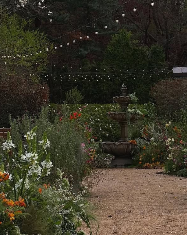 분수의 잔잔한 소리와 꽃잎 사이로 스며드는 햇살은 결혼식의 모든 순간을 영화처럼 만들어준답니다.